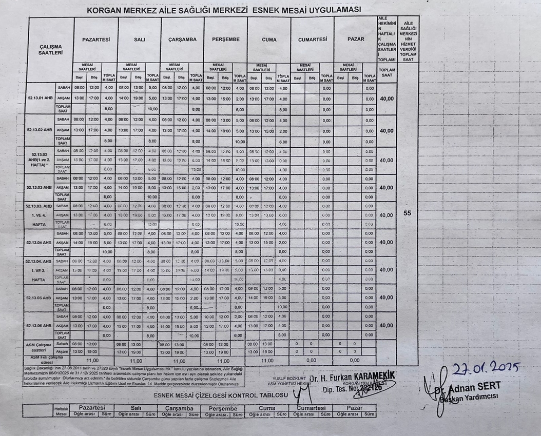 Aile Sağlığı Merkezimizde Görev Yapan Aile Hekimlerimizin Listesi İçin